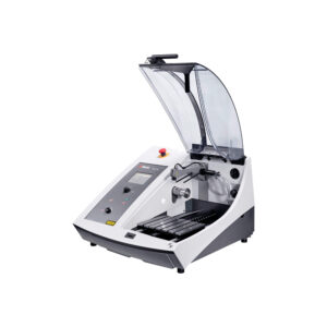 Настольный отрезной станок с возможностью прецизионной резки образцов. Сочетает в себе новейшие технологии прецизионной резки с гибкостью и легкостью в использовании. Просторная отрезная камера обеспечивает оптимальную доступность и вместимость. Большой подвижный моторизованный отрезной стол управляется джойстиком и позволяет резать относительно большие образцы. Высококачественная резка как очень мягких, так и очень твердых материалов на одном отрезном станке.